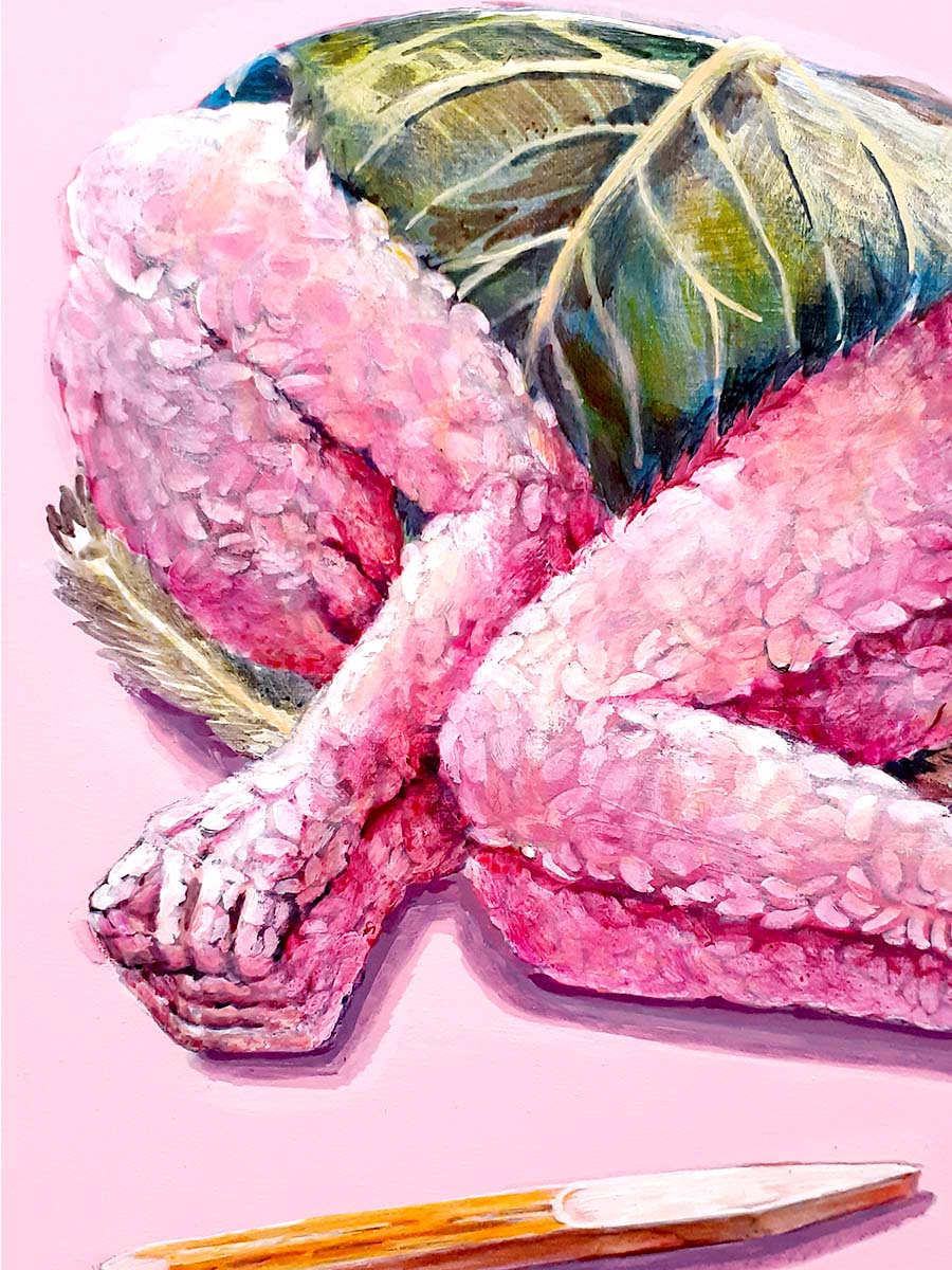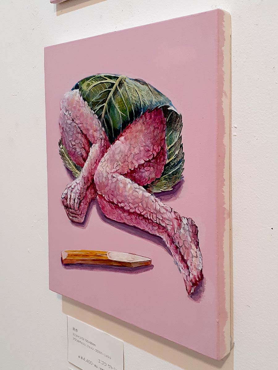 桜もちを擬人化したちょっぴり狂気を含んだユニークな作品です。春眠暁を覚えずという言葉をイメージして制作してます。