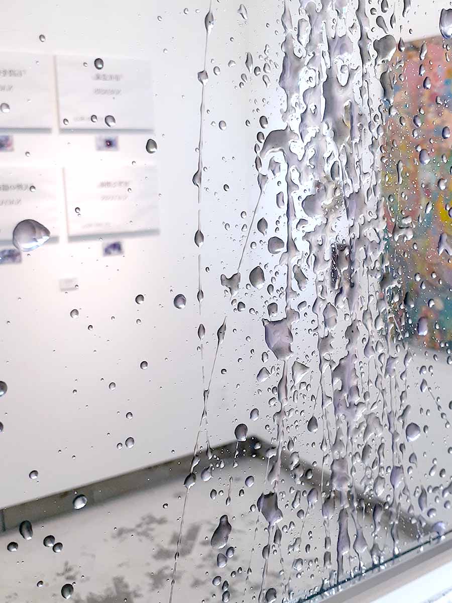 他の作家の展示作品が映り込んでいますが、この映り込んだ部分も含めて作品と呼べるような奥行きを感じさせる表現となっております。