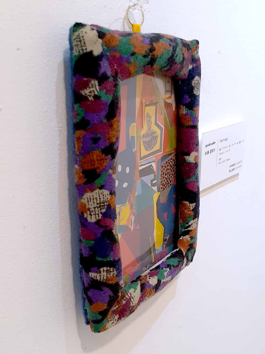 布製の迷彩柄の額に入れられた『紡ぐ』という意味合いを込められた作品となっています。あなたのお部屋に彩りを添えてくれることでしょう。
