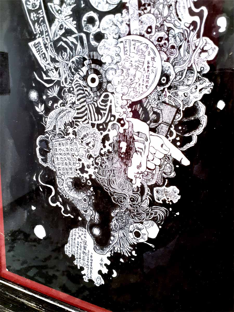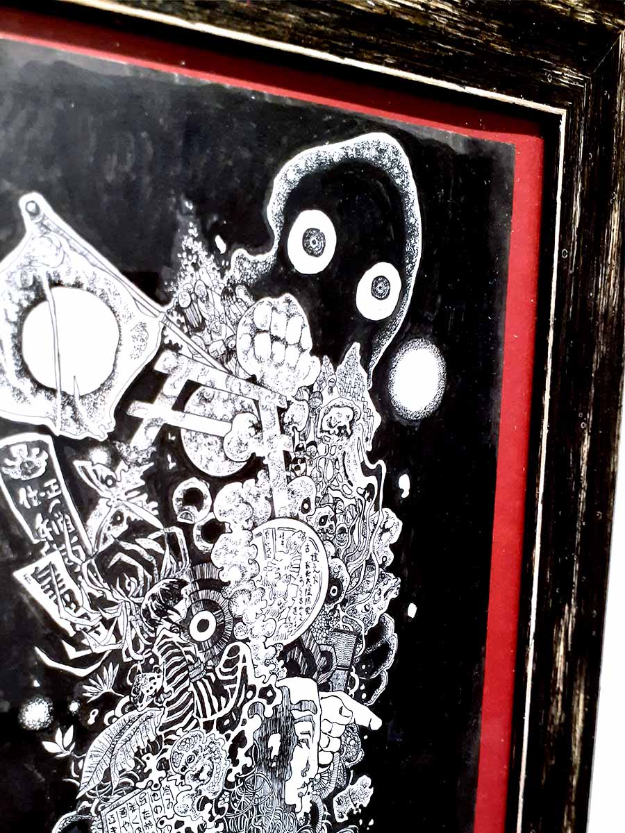 素材・技法:和紙,墨,ボールペン,筆ペン