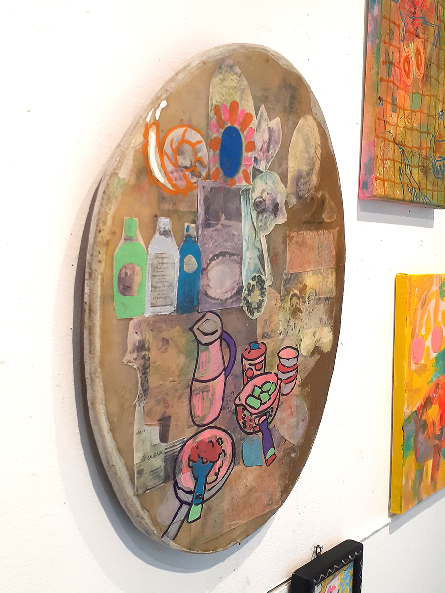 素材・技法:アクリル・ベン・樹脂・ガラス絵具・紙・木