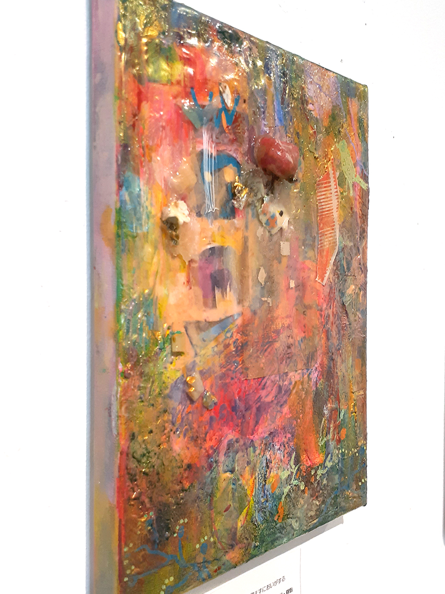素材・技法:アクリル・ペン・布・ガラス絵具・樹脂・蝸牛・紙・糸・プラスチック・キャンバス