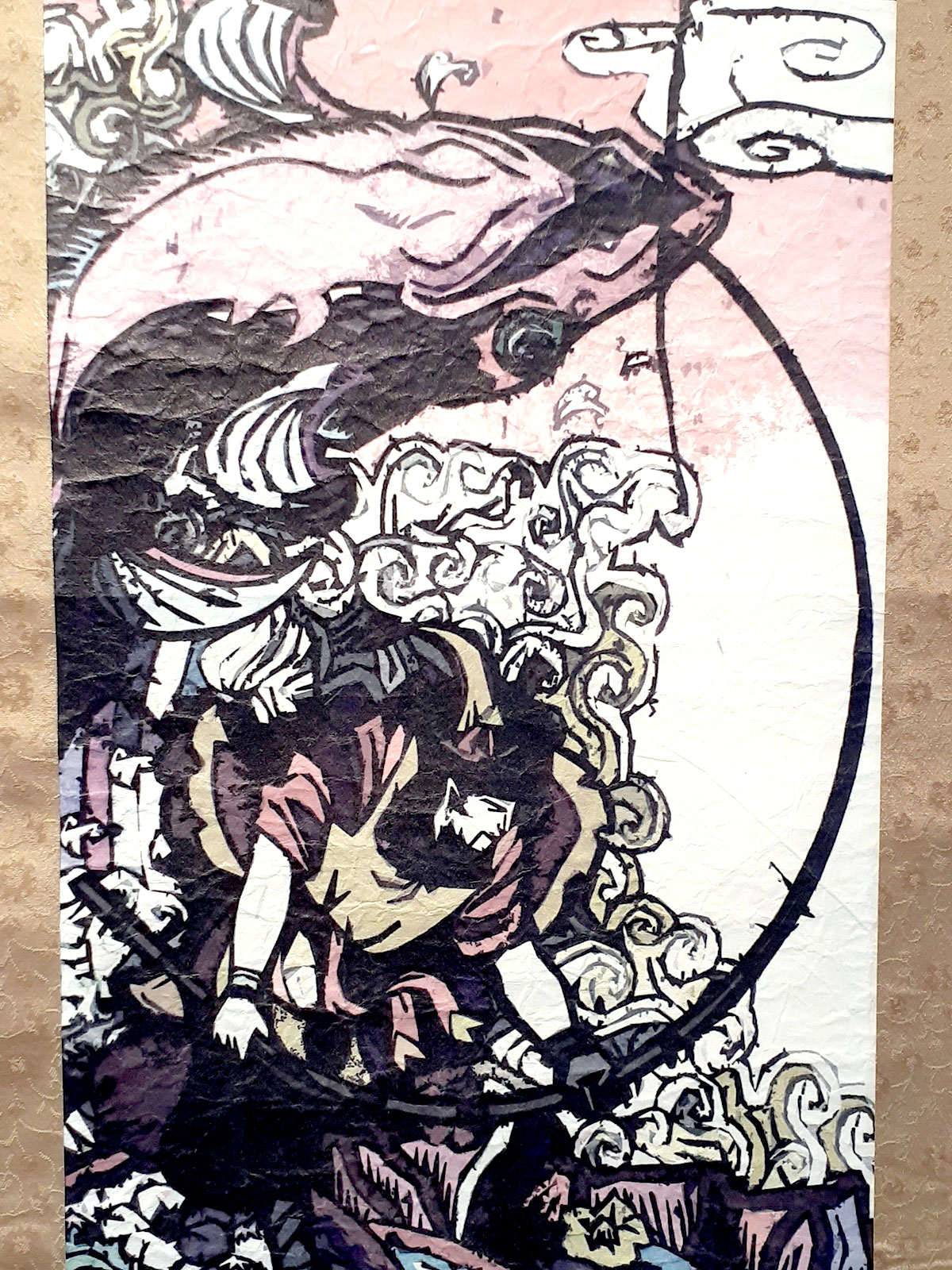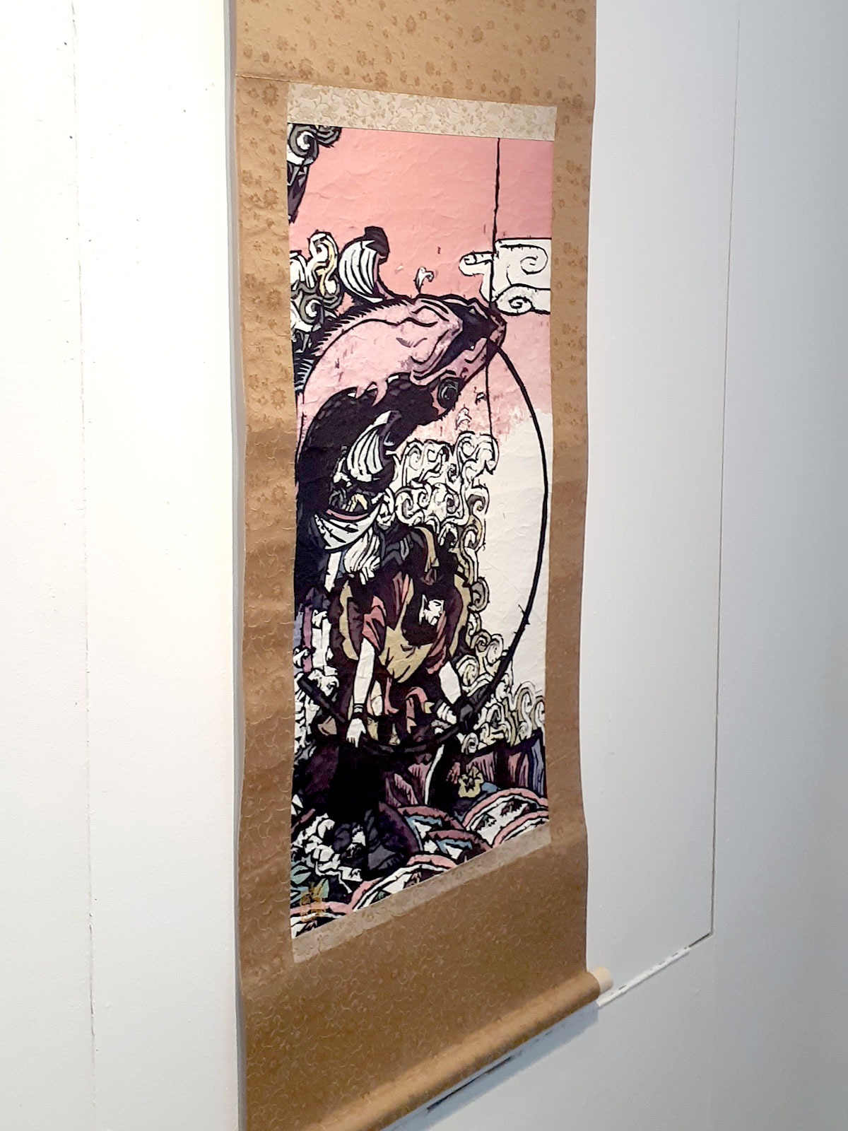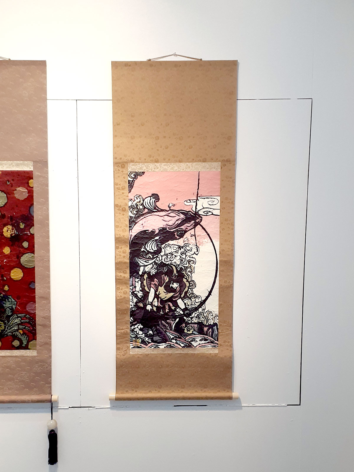 素材・技法:和紙、デジタルインク、シワ加工、風鎮付、金紙
