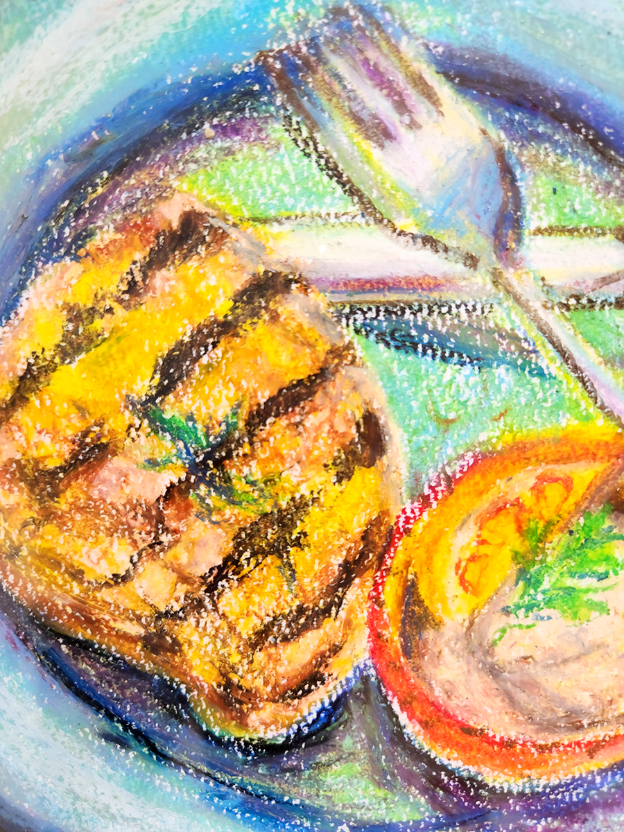 素材・技法:クレパス・ニス