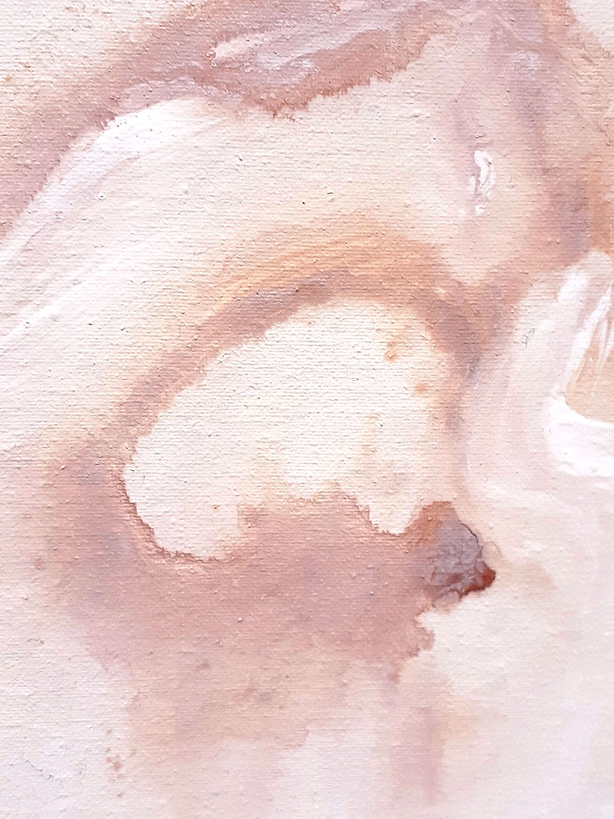 展示コンセプト: 直感的に描く行為と画面に現れるものに向き合う純粋な時間から、自己と世界における本質を炙り出そうと試みている。 衝動的な感覚と自らの秩序をもってそこに在る根源的な何かをすくいとり、絵画として力の宿るものへと昇華したい。