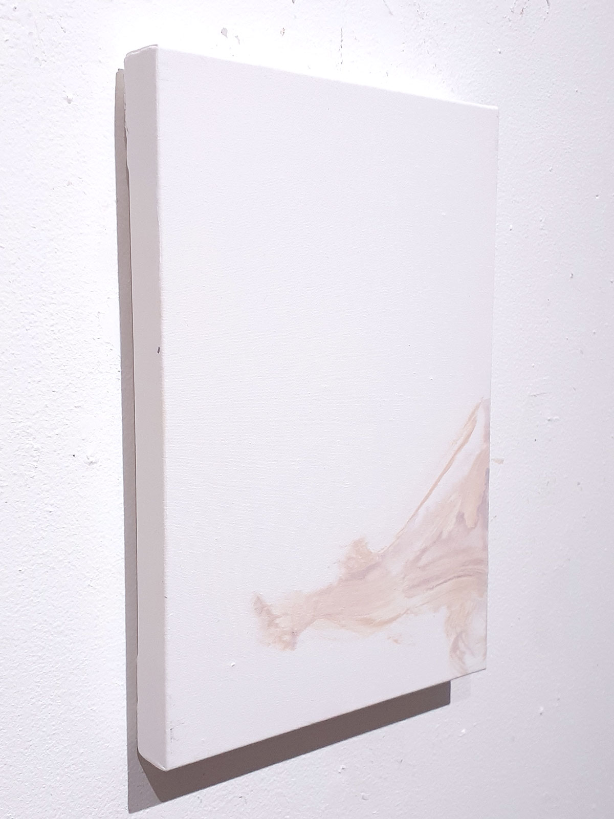 展示コンセプト: 直感的に描く行為と画面に現れるものに向き合う純粋な時間から、自己と世界における本質を炙り出そうと試みている。 衝動的な感覚と自らの秩序をもってそこに在る根源的な何かをすくいとり、絵画として力の宿るものへと昇華したい。