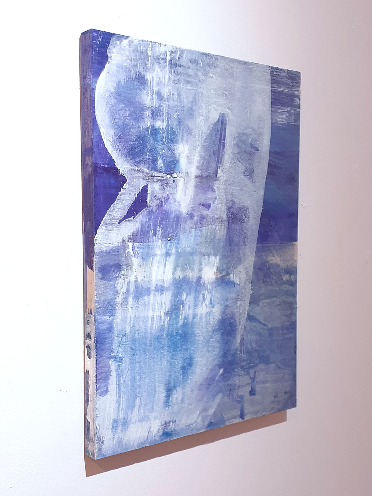 展示コンセプト: 直感的に描く行為と画面に現れるものに向き合う純粋な時間から、自己と世界における本質を炙り出そうと試みている。 衝動的な感覚と自らの秩序をもってそこに在る根源的な何かをすくいとり、絵画として力の宿るものへと昇華したい。