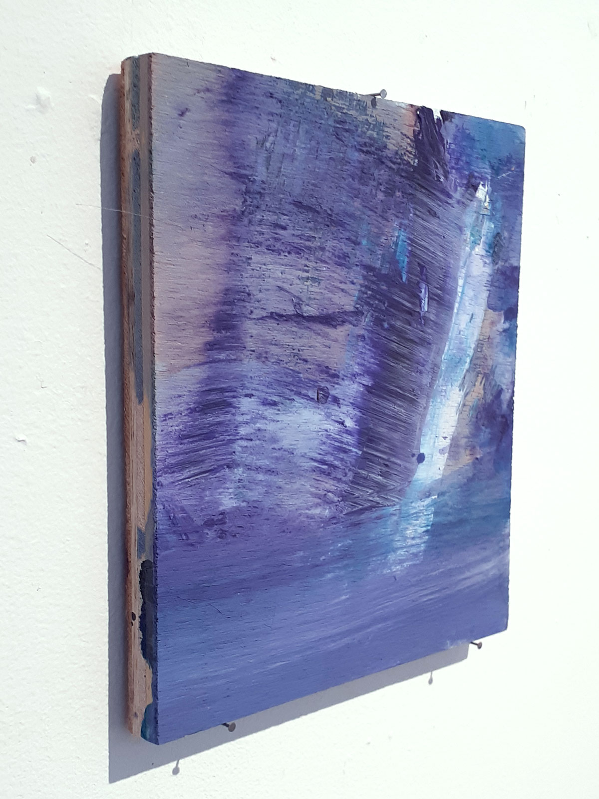 展示コンセプト: 直感的に描く行為と画面に現れるものに向き合う純粋な時間から、自己と世界における本質を炙り出そうと試みている。 衝動的な感覚と自らの秩序をもってそこに在る根源的な何かをすくいとり、絵画として力の宿るものへと昇華したい。