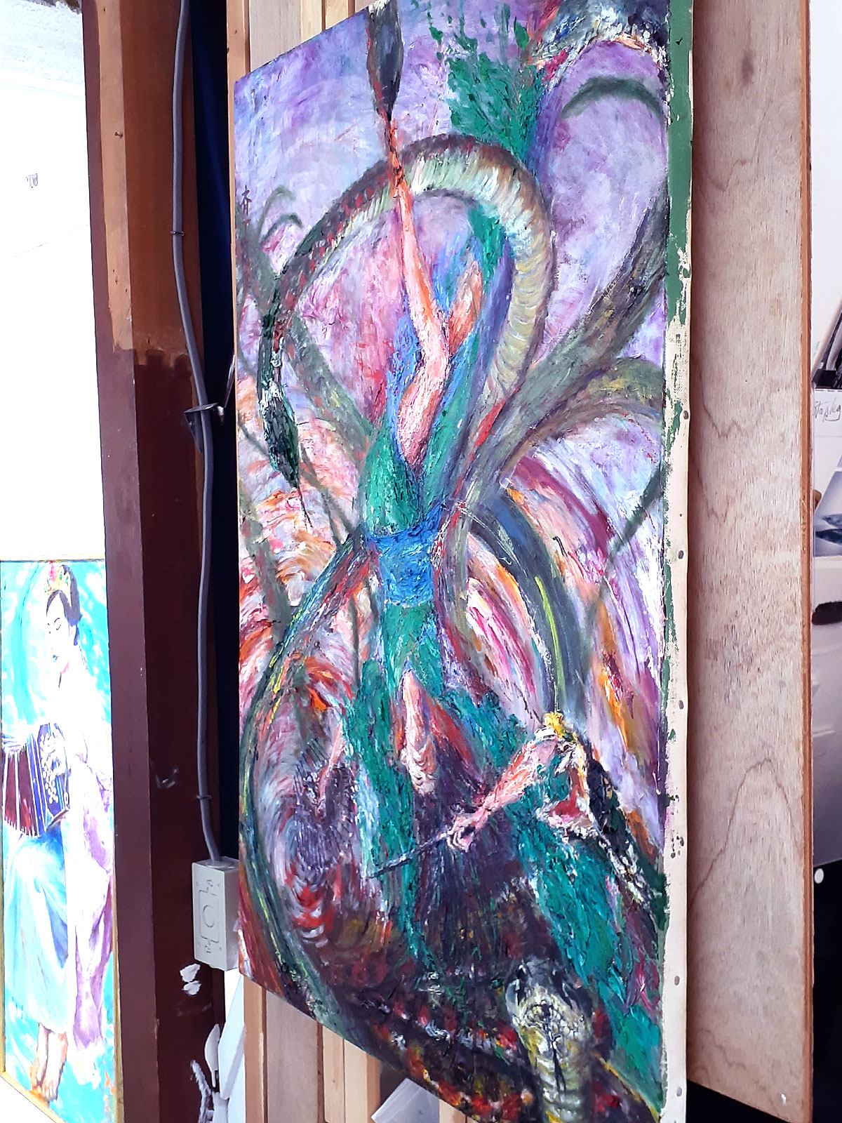展示コンセプト:斉藤“ザ☆モンゴルマン”俊一の真骨頂、邪鬼も踊り出す「楽奏神仏シリーズ」を油彩中心に展覧しています。