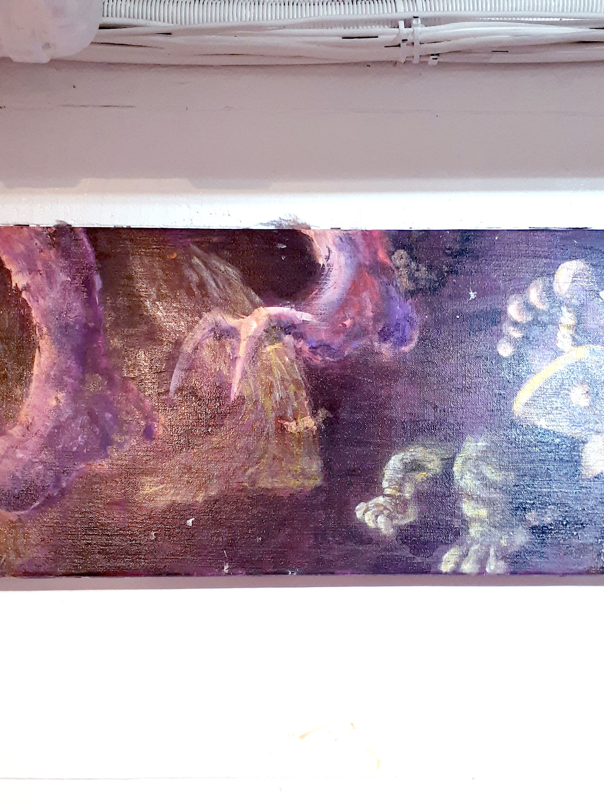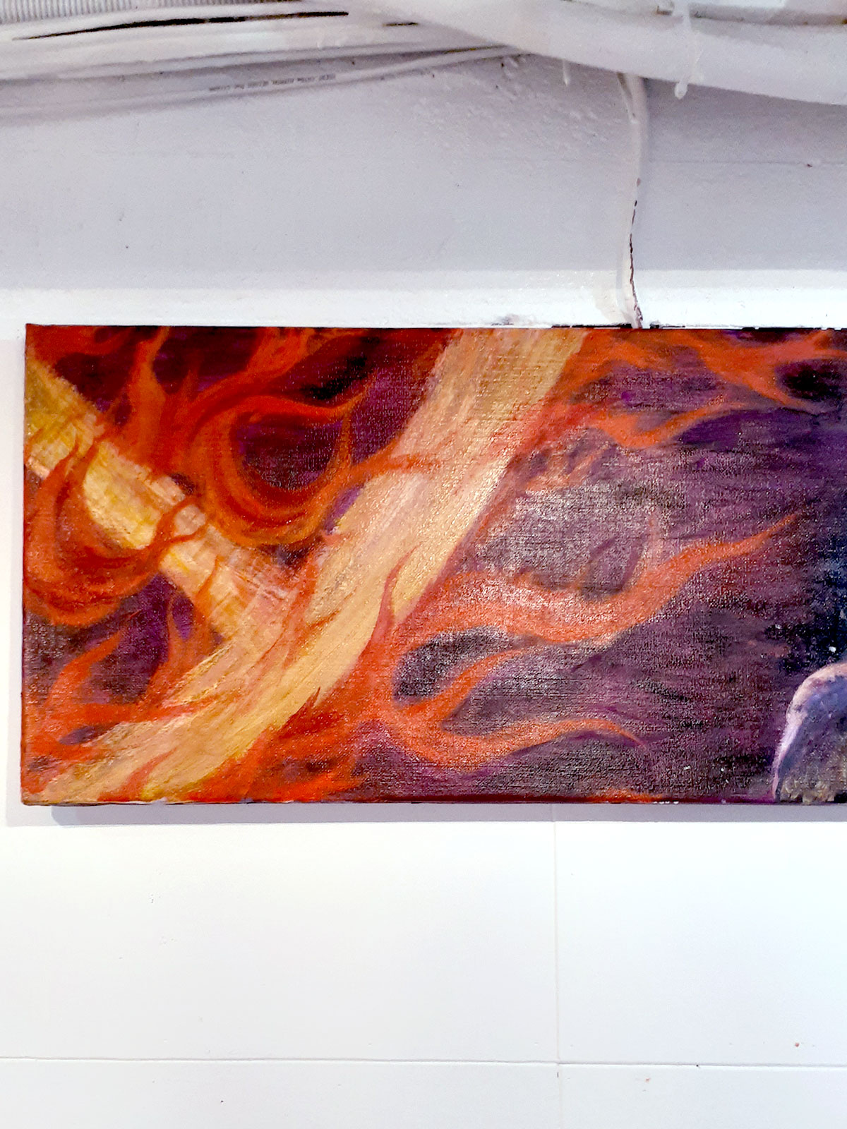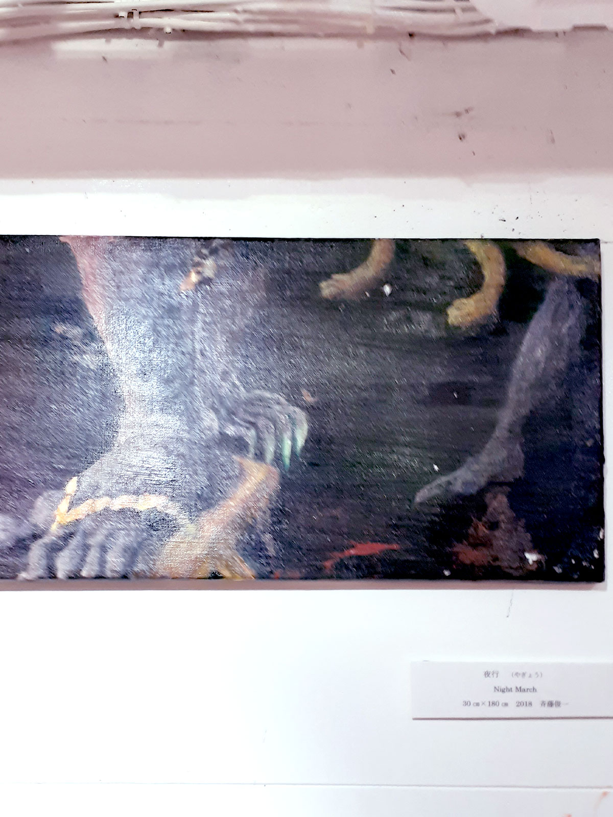 展示コンセプト:斉藤“ザ☆モンゴルマン”俊一の真骨頂、邪鬼も踊り出す「楽奏神仏シリーズ」を油彩中心に展覧しています。