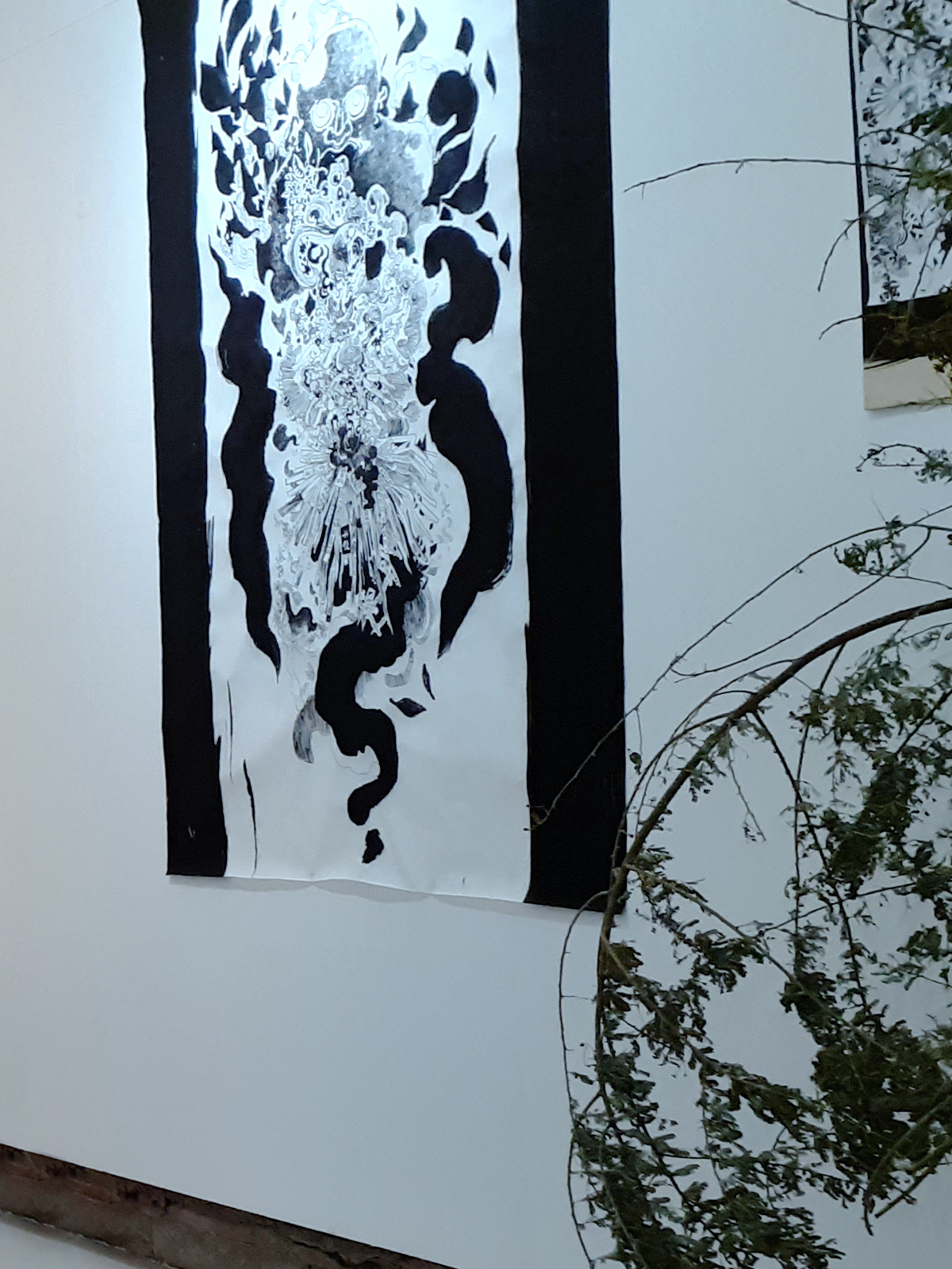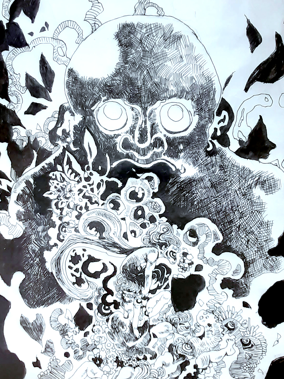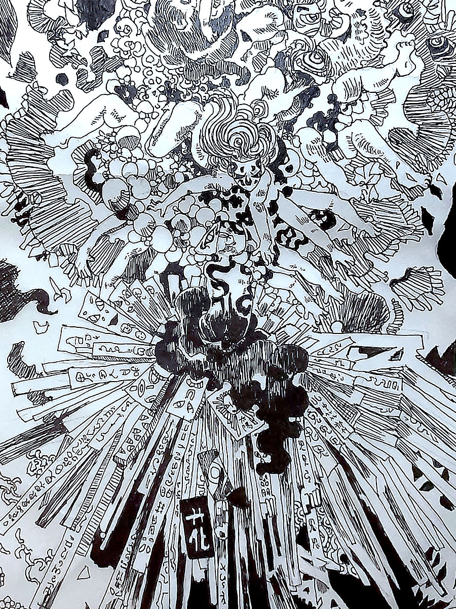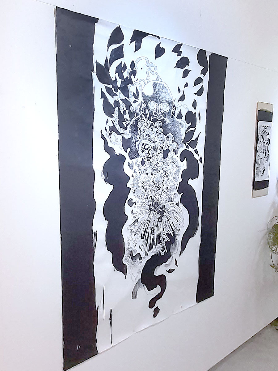 素材・技法:和紙,墨,ボールペン,筆ペン
