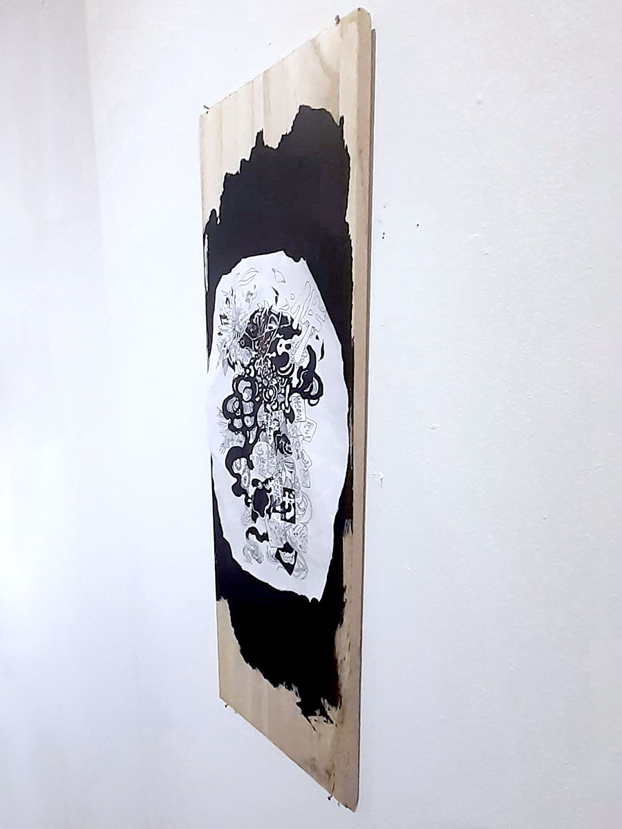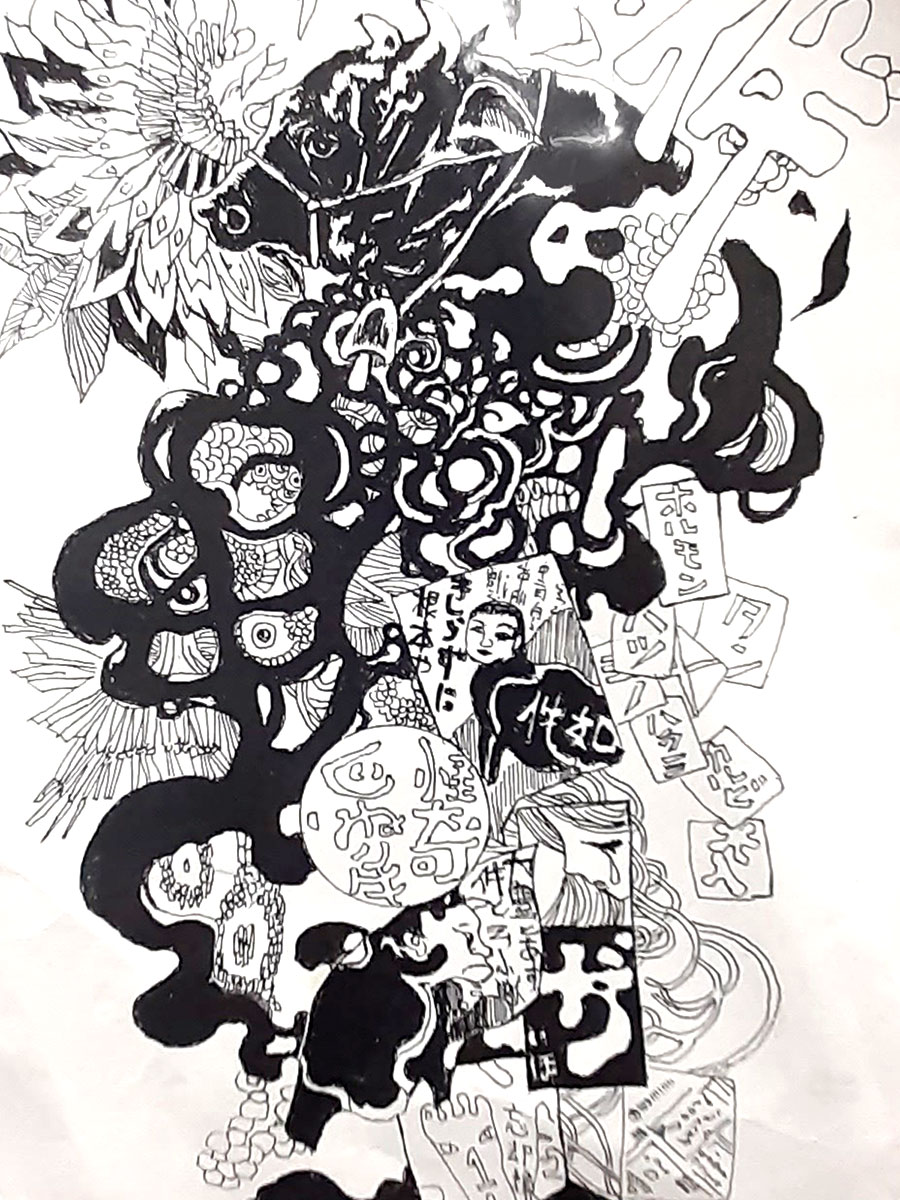 素材・技法:和紙,墨,ボールペン,筆ペン